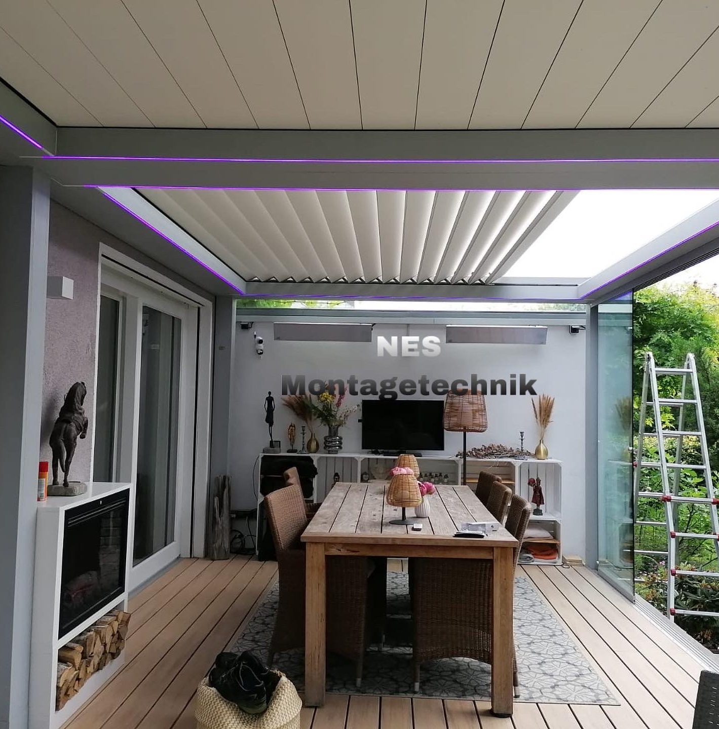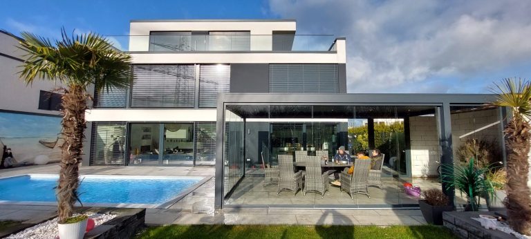 schwenkbares Lamellendach mit integrierten Zip-Markisen