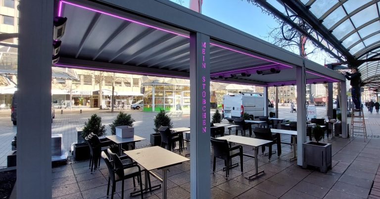 Die Pergola Markise ist die ideale Lösung für Ihre Gastronomie da sie nicht nur Schutz vor Sonne und Regen bietet, sondern auch ein flexibles, fahrbares Dach beinhaltet. Mit dieser Art von Markise können Sie Ihre Terrasse nach Ihren Wünschen gestalten und an die Wetterbedingungen anpassen. Ob Sie einen sonnigen Tag genießen oder sich vor einem unerwarteten Regenschauer schützen möchten, die fahrbare Pergola Markise sorgt dafür, dass Sie jederzeit im Freien entspannen können. Durch innovative Technologien und ansprechendes Design fügt sich die Pergola harmonisch in Ihre Umgebung ein und verleiht Ihrer Terrasse ein modernes Flair.